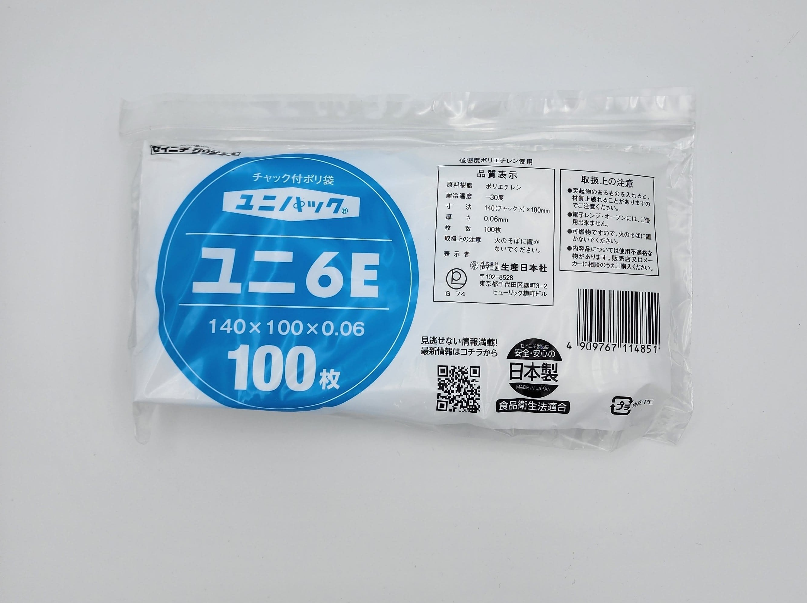 ユニパック06は、チャック付ポリ袋の0.06mm中厚口タイプです。