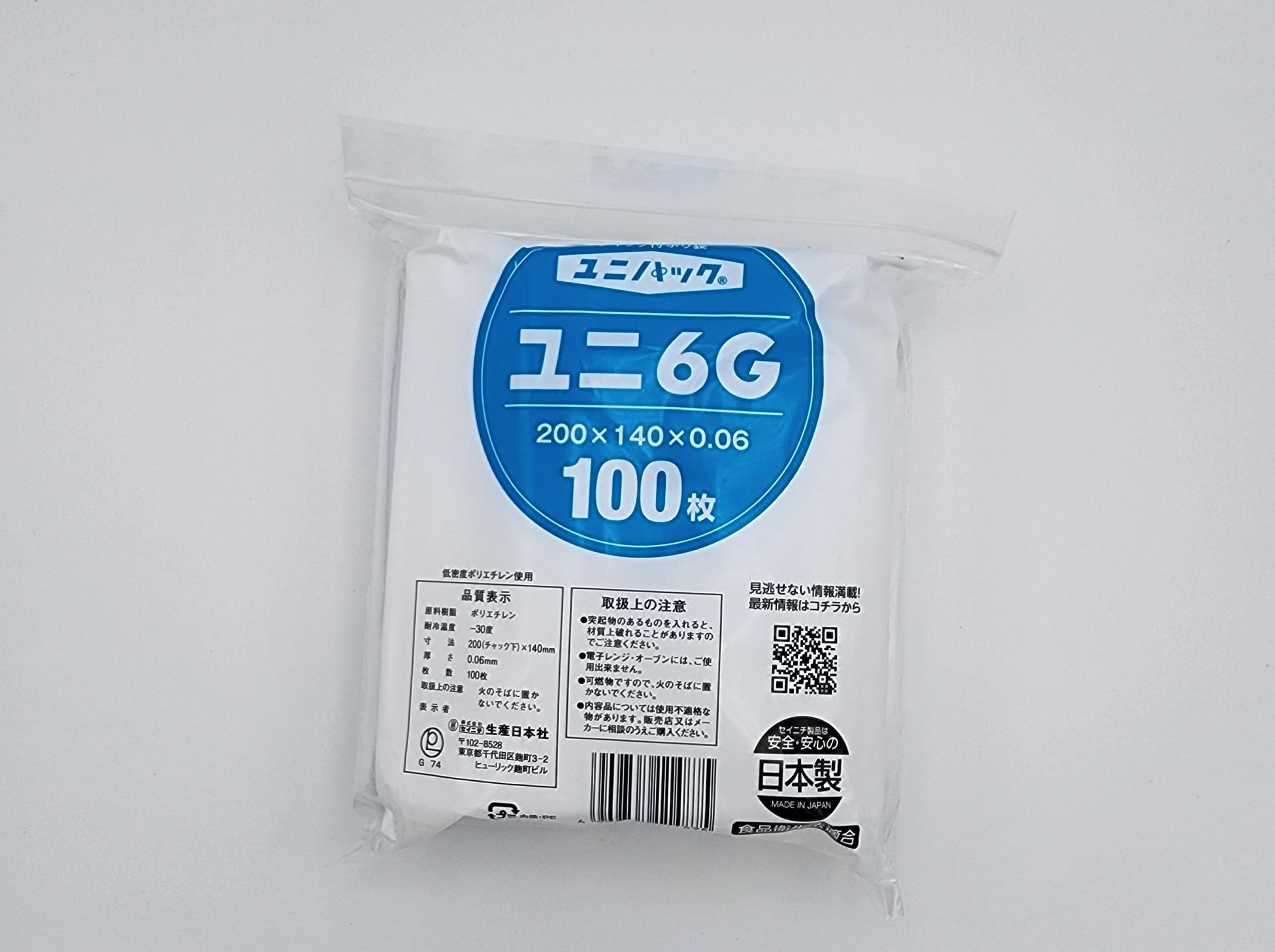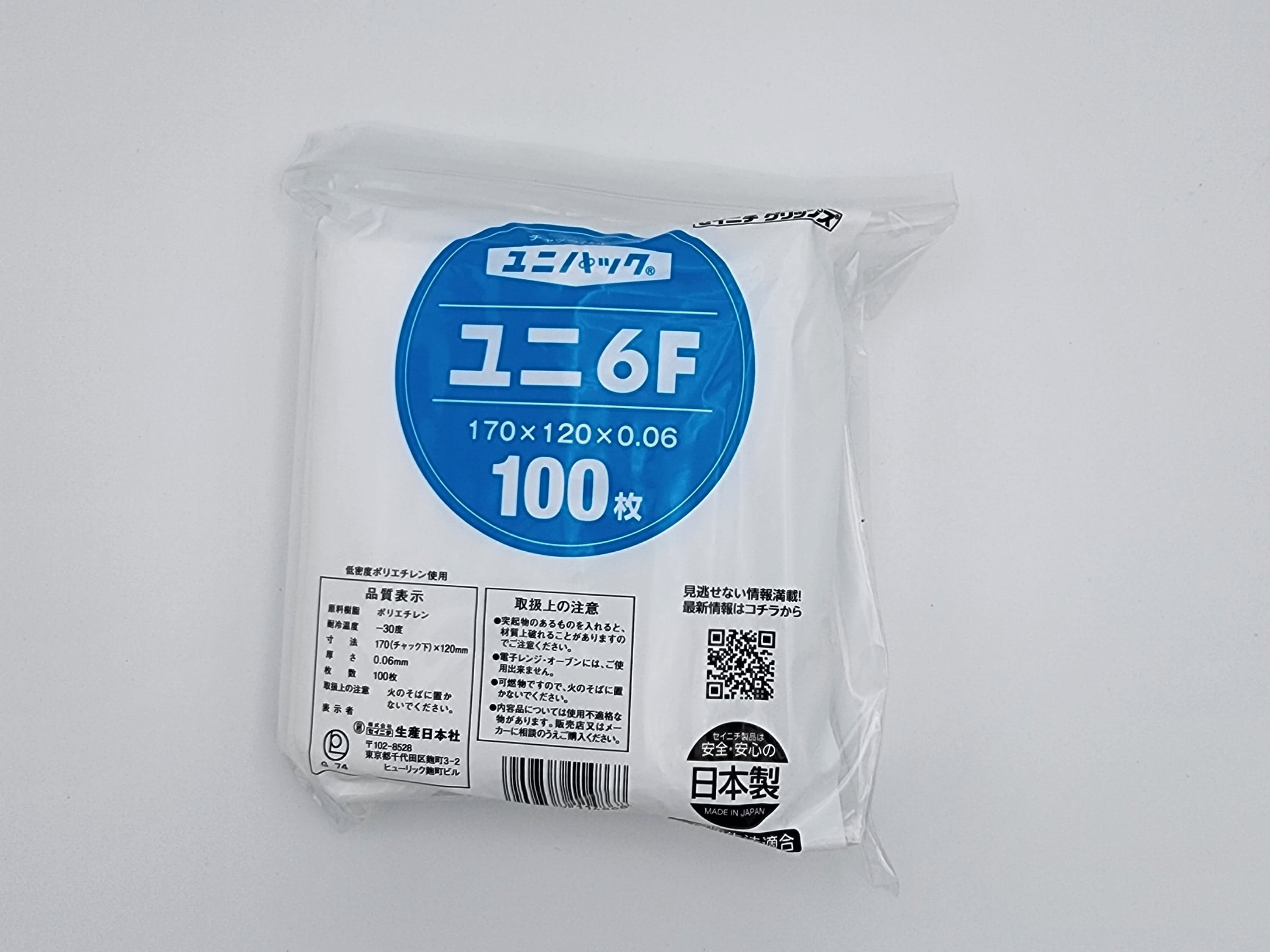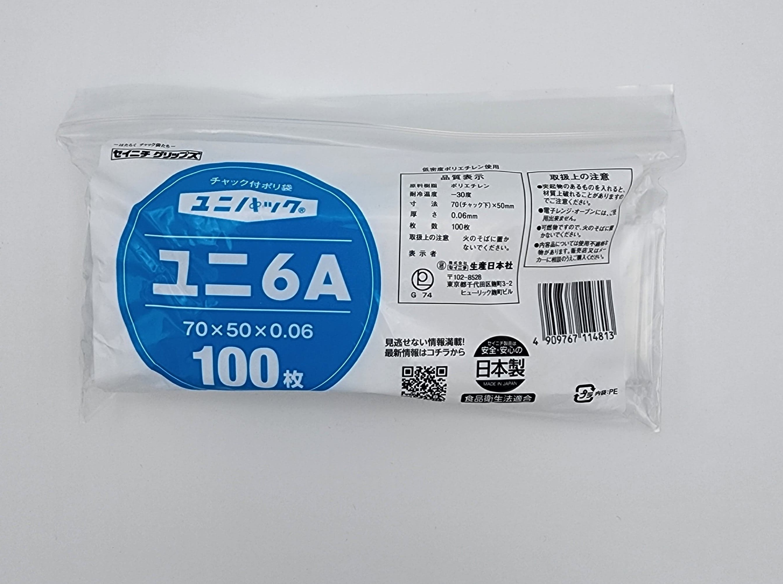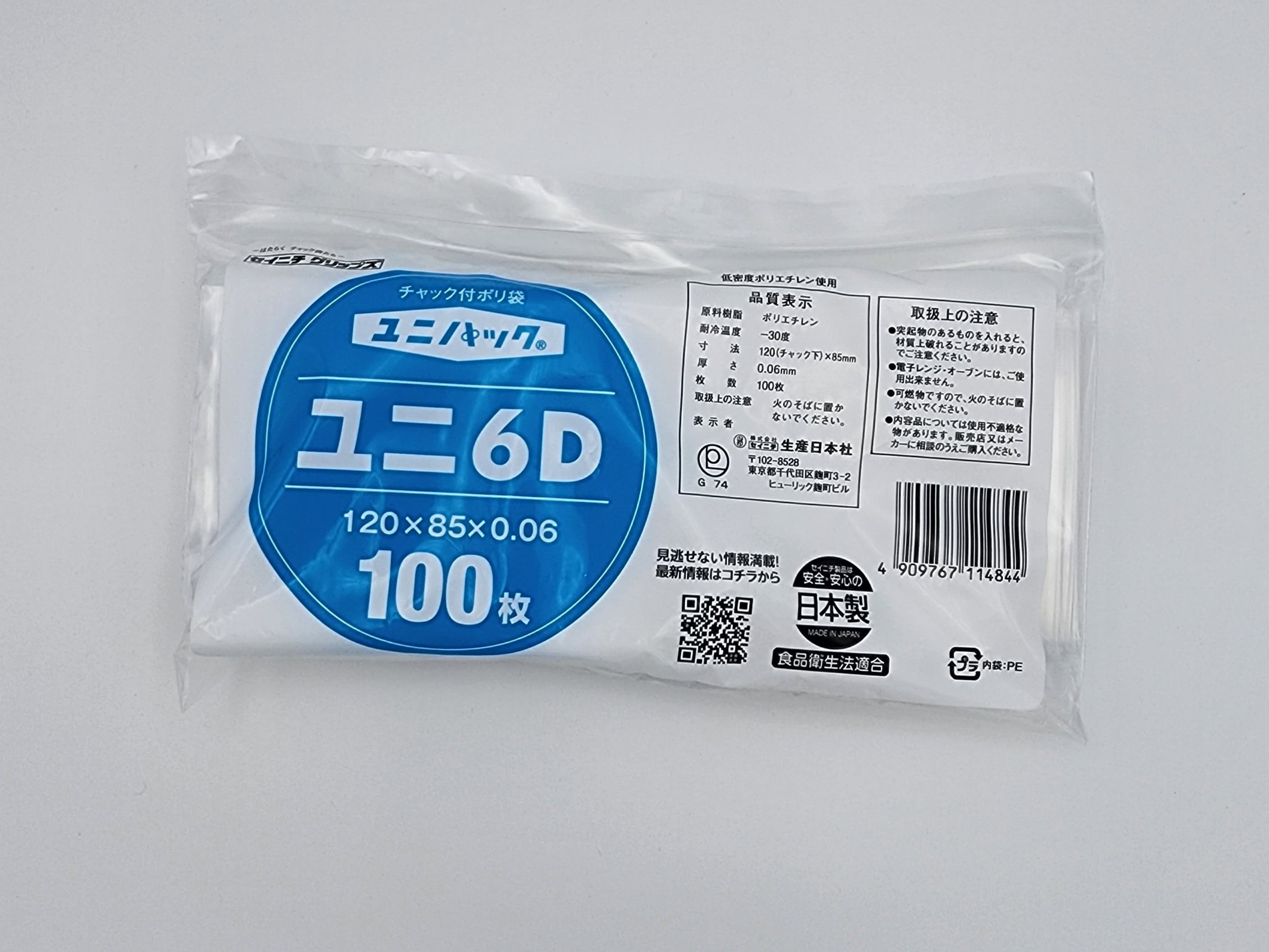 ユニパック06は、チャック付ポリ袋の0.06mm中厚口タイプです。