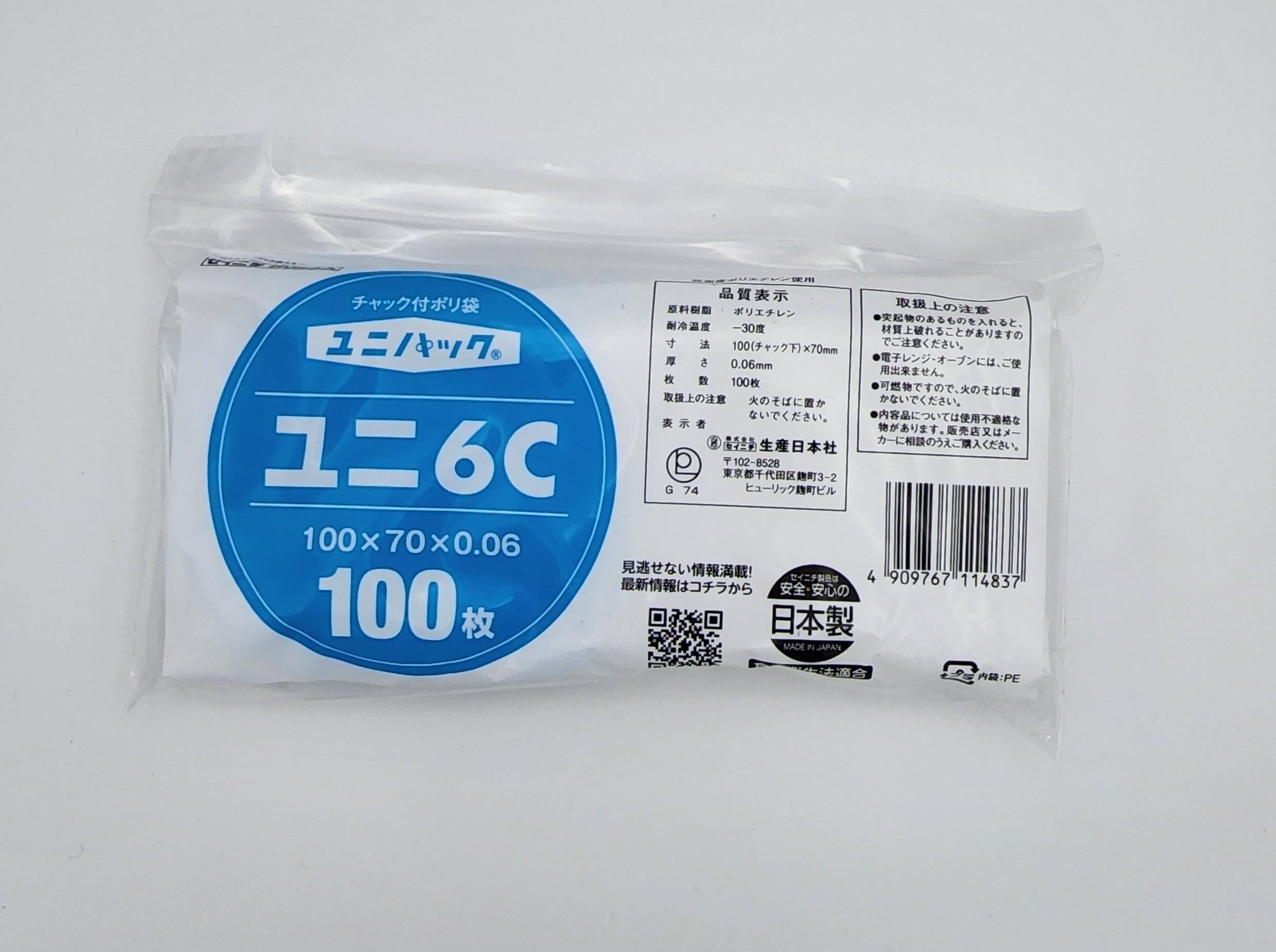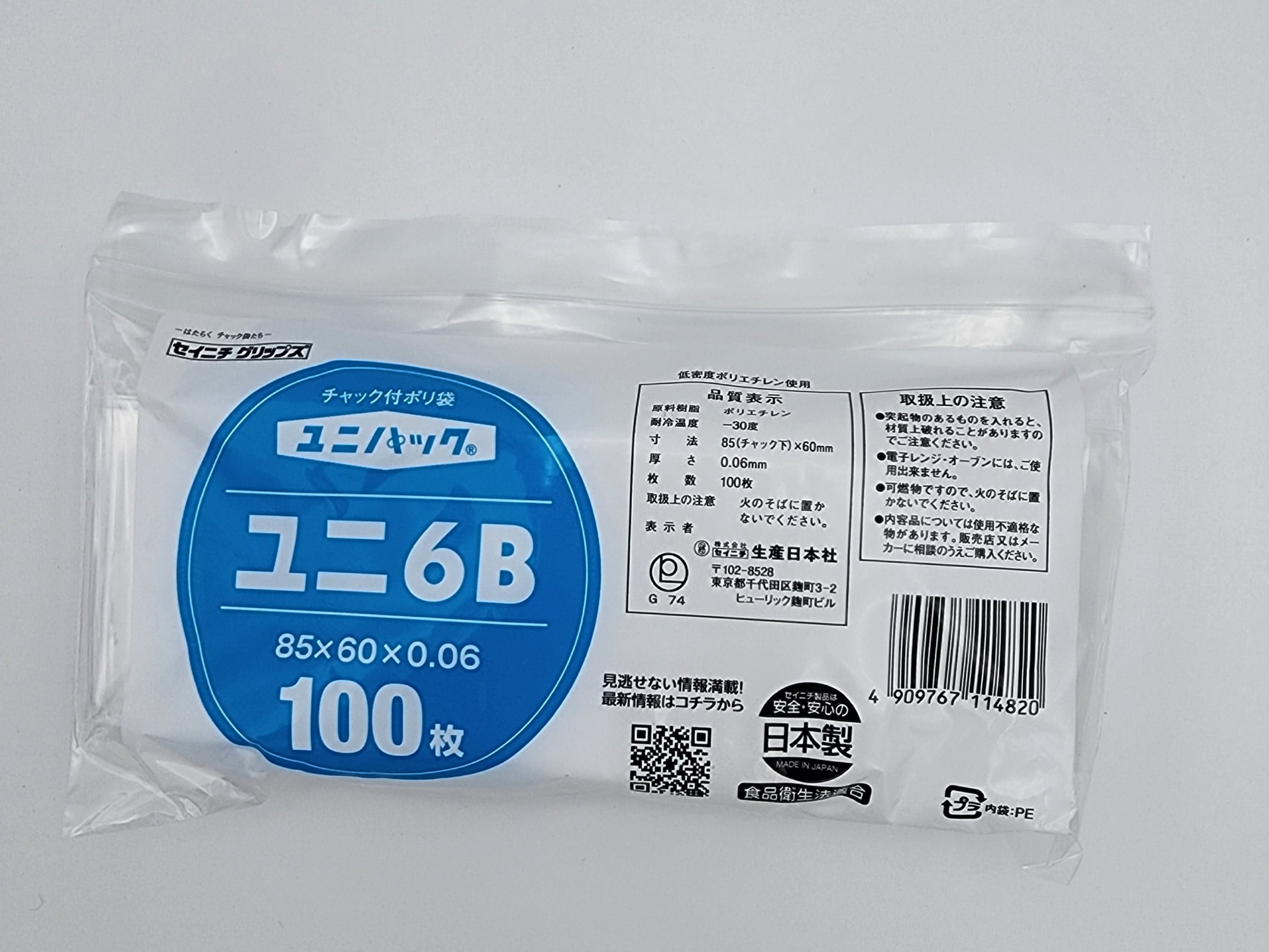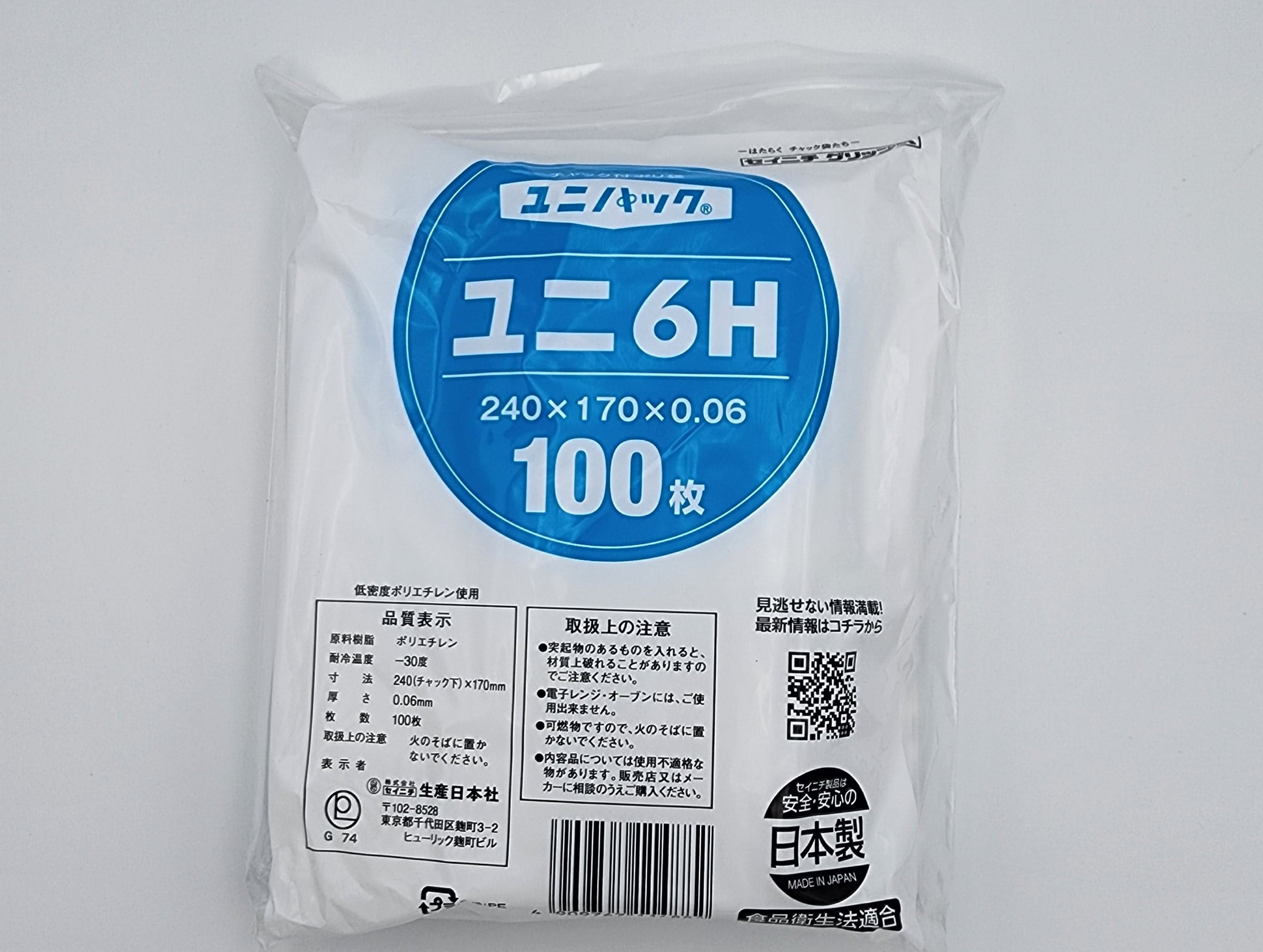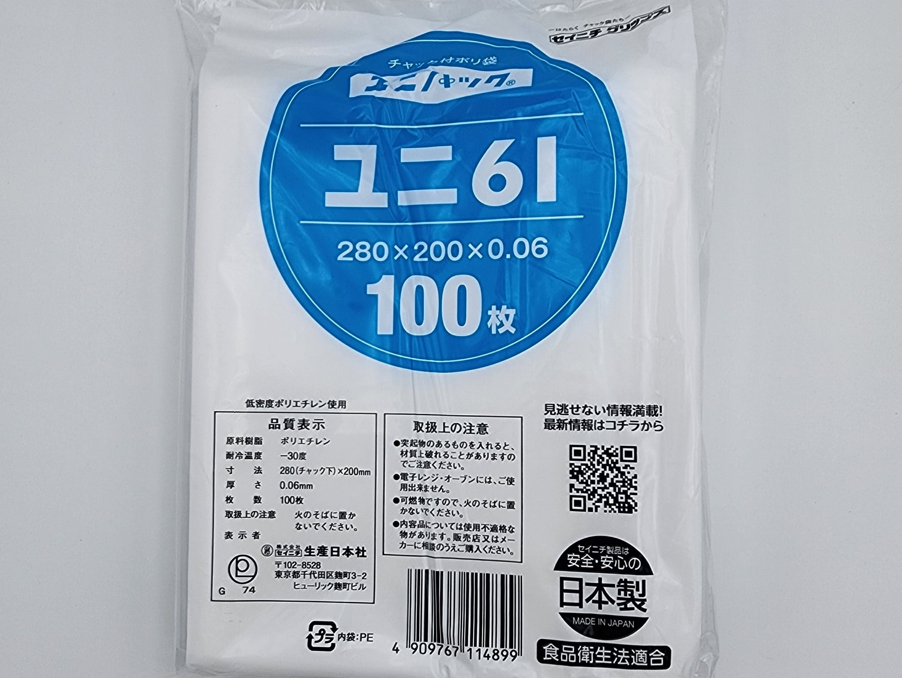 ユニパック06は、チャック付ポリ袋の0.06mm中厚口タイプです。